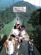 朝5時に起きて出発して一発目は日本一の長さの谷瀬のつり橋(約300m)。