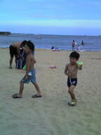 そんなことはお構いなしに砂浜で遊ぶ子供達。